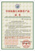 中國電源行業推薦產品 證書